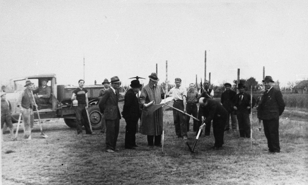 Il podestà Gerolamo Bonati posa la 1^ pietra della scuola elementare "Guglielmo Marconi".