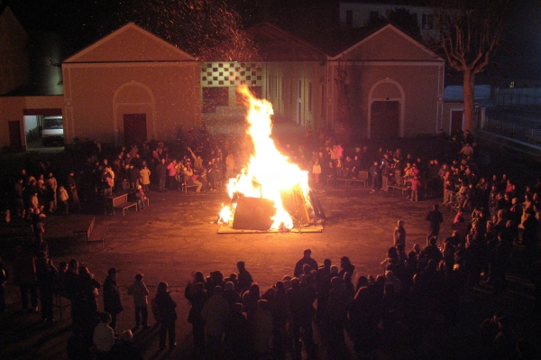 Il tradizionale falò di S. Antonio nel cortile dell'oratorio.