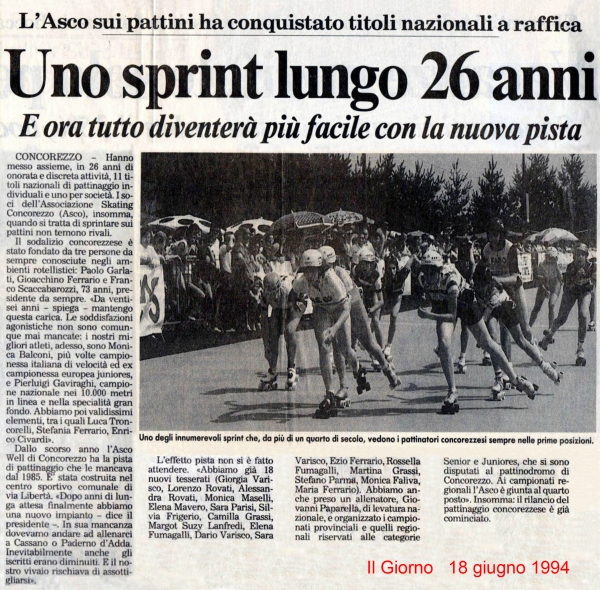 Descrizione: Un articolo de "Il Giorno" dedicato alle imprese sportive ottenute dall'A.S.CO. anche in ambito internazionale, che certamente avranno seguito col nuovo impianto di pattinaggio inaugurato pochi mesi addietro.
